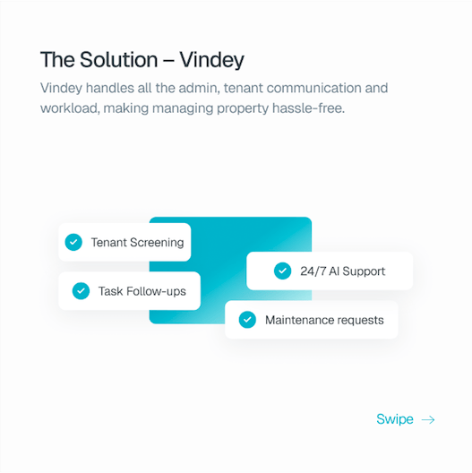 Vindey automatically engages leads 24/7 across all channels, answering questions, matching ideal properties, scheduling tours, screening prospects, and automating follow-ups to maximise conversions. Vindey delivers seamless multi-channel communication that converts more prospects into tenants, faster than ever before.
